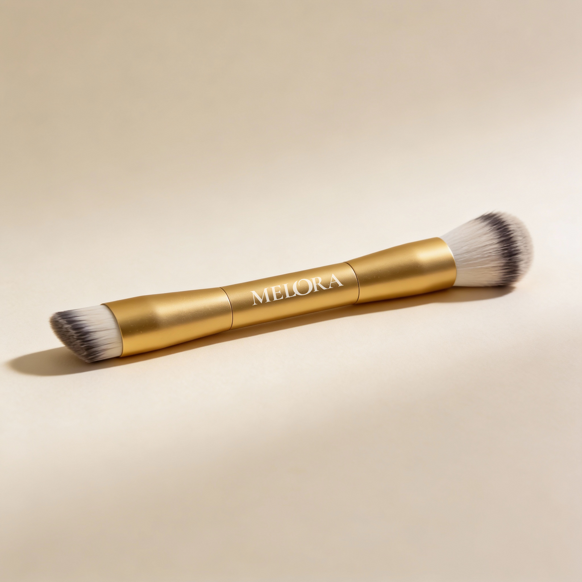 A double-sided brush that provides controlled application and a soft, even result - without emphasizing fine lines.